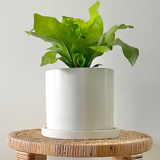 Concrete Round Planter: White