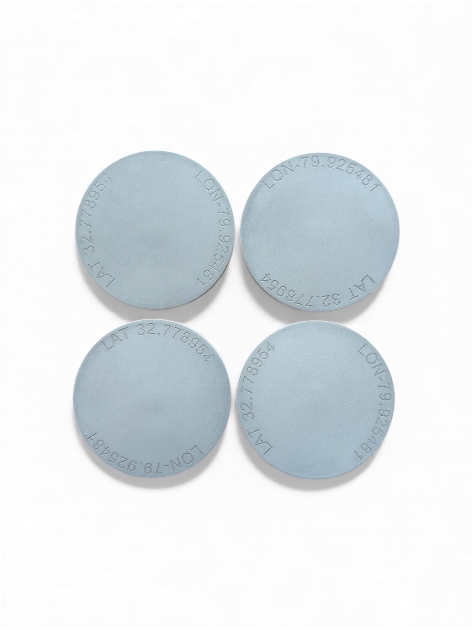 Please note that this listing is for personalized coasters with lon/lat bearings as shown. If you have a different personalization request or you are looking for bulk orders, please contact us for bulk/custom pricing!